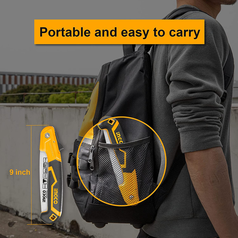 تاشو و دارای قابلیت حمل و نقل راحت ساخته شده از تیغه های با کیفیت SK5 دارای دکمه باز و بست جهت جلوگیری از آسیب اره به دست